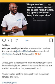 Tuface also made the announcement via his Instagram account, writing: “I am honored and humbled by my new appointment as a regional goodwill ambassador of UNHCR.