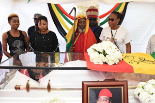 Next day, Thursday, the 23rd, Oluwaleimu Street witnessed the grand Kimono Lying-in-State. His body was placed in an all-glass casket on an enchanting dais designed by Gbemisola Amedu and set up by Lefranc Eventors, in front of the magnificent COSON House. People streamed in from everywhere to view the body and pay their last respects to the Rub-A-Dub Master. After the lying-in-state, a strong delegation of the COSON Board and its officials; the Rastafarian community, members of the family, friends, and other entertainment industry personalities and the media, set out in a massive convoy to Asaba, the capital of Delta State.