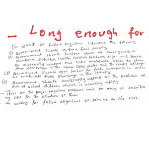 According to a suicide note he reportedly left at the foot of the mast, he demanded the return of the fuel subsidy, among other demands for the government to alleviate the burdens on Nigerians.