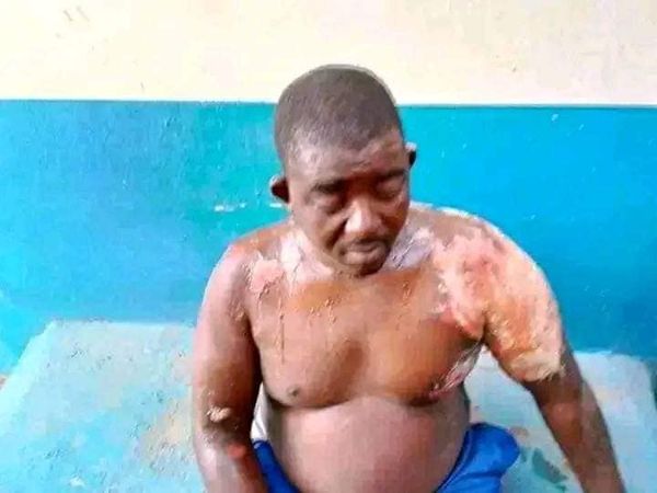 He said his wife first attempted to stab him to death but that he was able to collect the knife from her before she went to take the water she was boiling and poured it on him.
