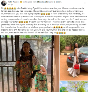 Ogechi, who was raised by her struggling mother, was said to have received a scholarship from an organization to do a post-graduate course before her sad demise.
