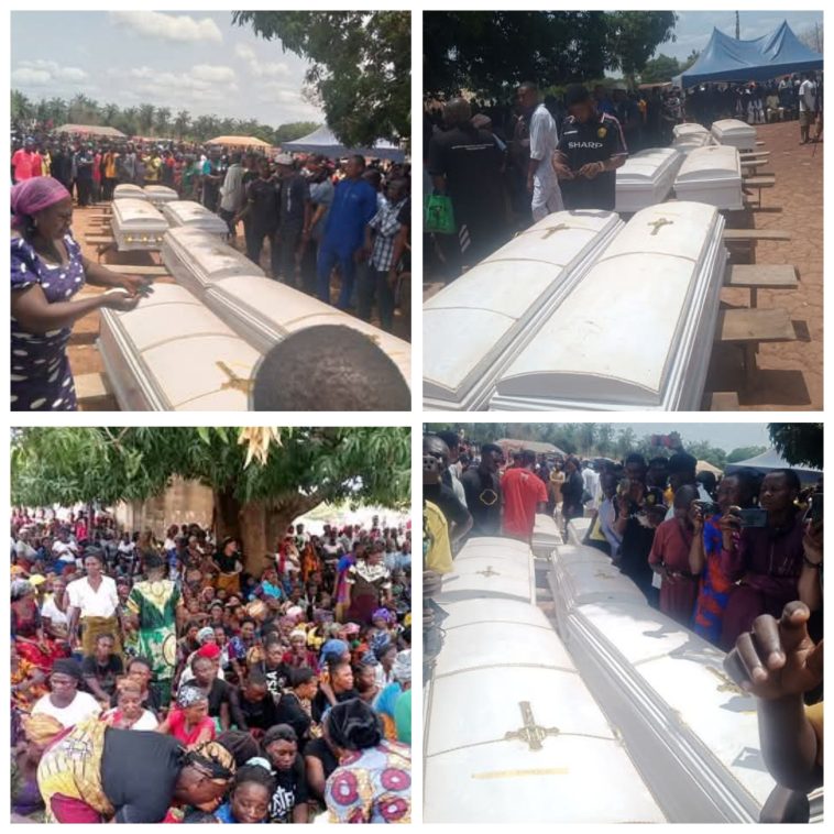 The mass burial is ongoing at Methodist Primary School in Otobi Akpa.