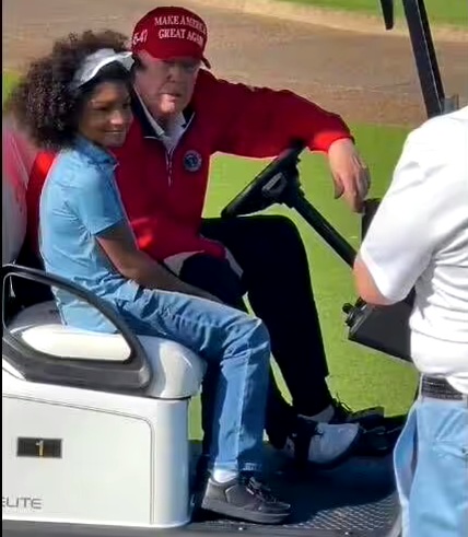 The US President-elect was spotted chatting with fans during a golf cart ride at his West Palm Beach Mar-a-Lago home.
